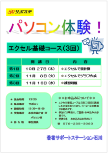 ☞ エクセル基礎コースは、3回(3日間)連続した内容となっています。