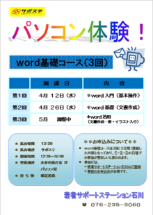 ☝ ワード基礎コースは、3回(3日間)連続した内容です。①・②・③の参加がお勧めです☆