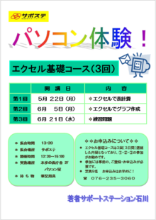 ☞ エクセル基礎コースは、3回(3日間)連続した内容となっています。