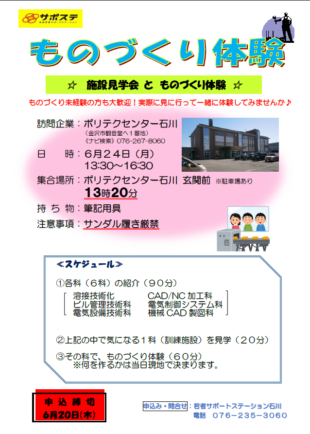 ◆◆ポリテクセンター石川で、施設見学会と「ものづくり」を体験しましょう!◆◆
