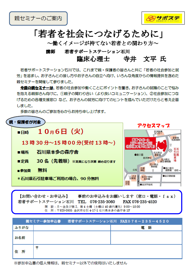 ★☆保護者の方・関係機関の方に向けたセミナーです☆★