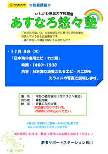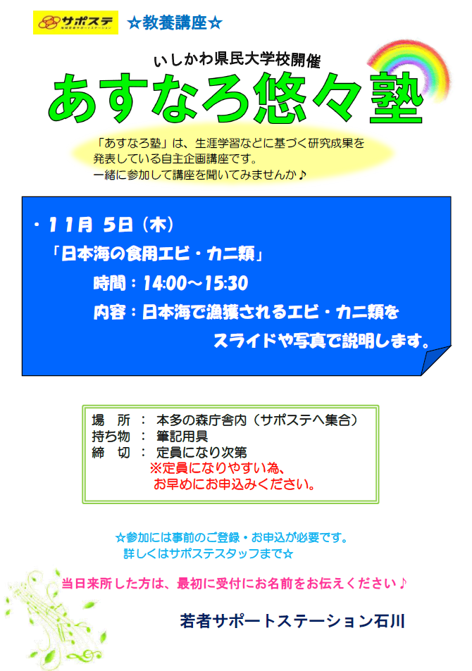 ☆★いしかわ県民大学校開催の「あすなろ悠々塾」に一緒に参加しましょう~☆★